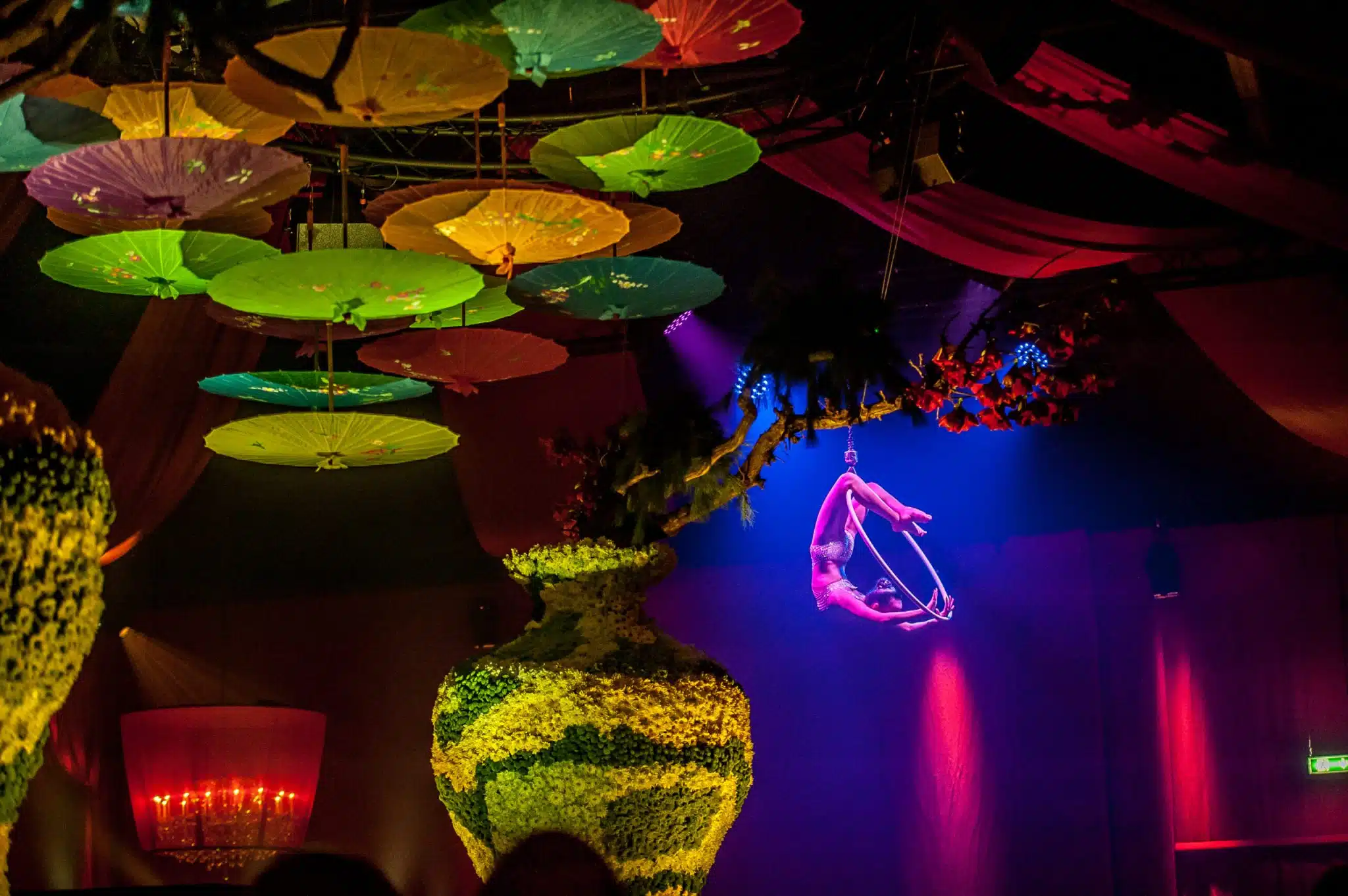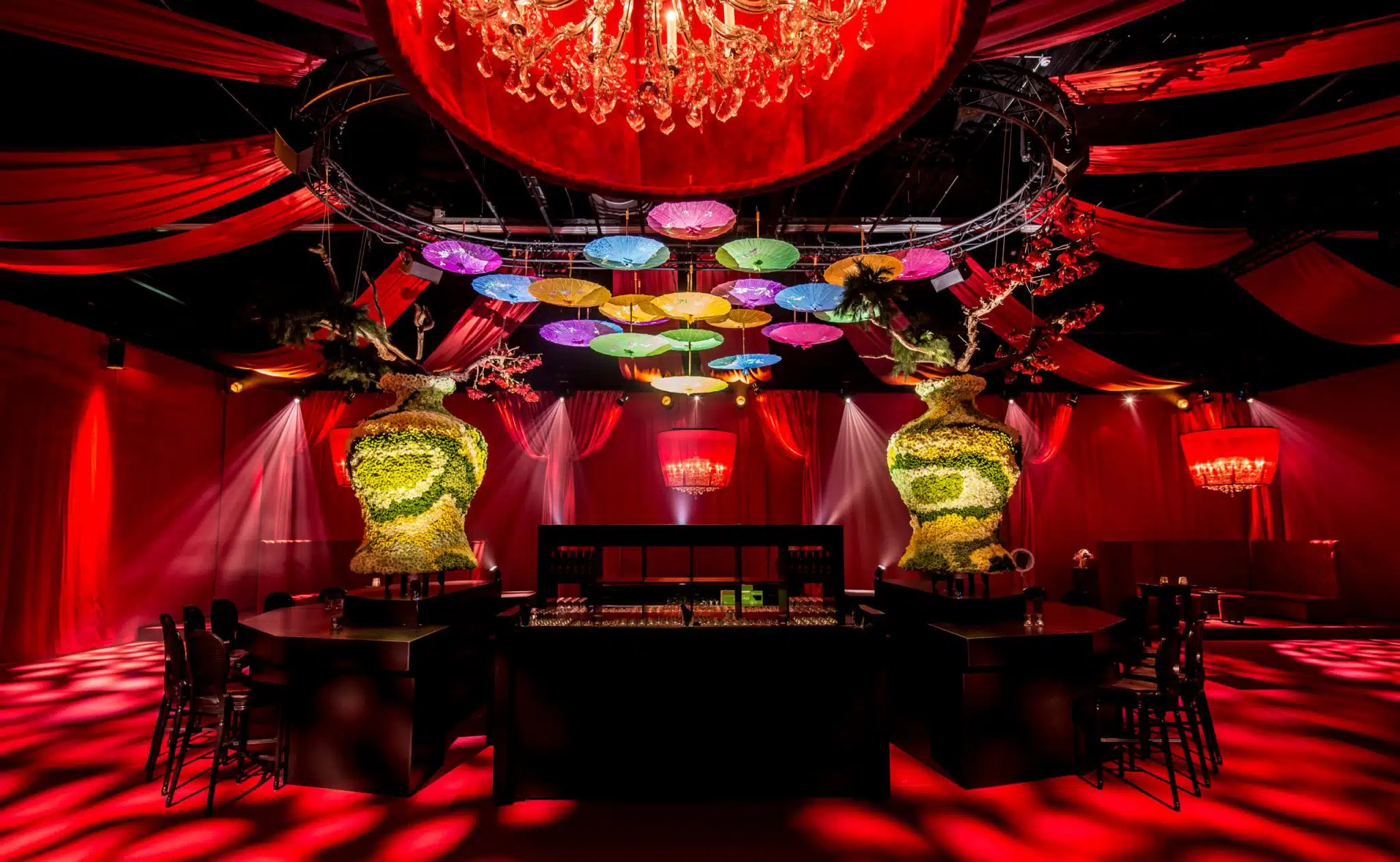 We used our Live Legends magic to create a Chinese Club , called the Jade, to make sure the location was unrecognizable: Chinese Ornaments, Flowers, Odaiko’s, Drummers, Dancers, Aerialists, Umbrella’s, Chinese Lanterns and much more. We thought about every single detail and made sure the Chinese culture was immersed into this new club. Just for one night only the employees of PVH could step out of their busy lives and found themselves in the middle of China.